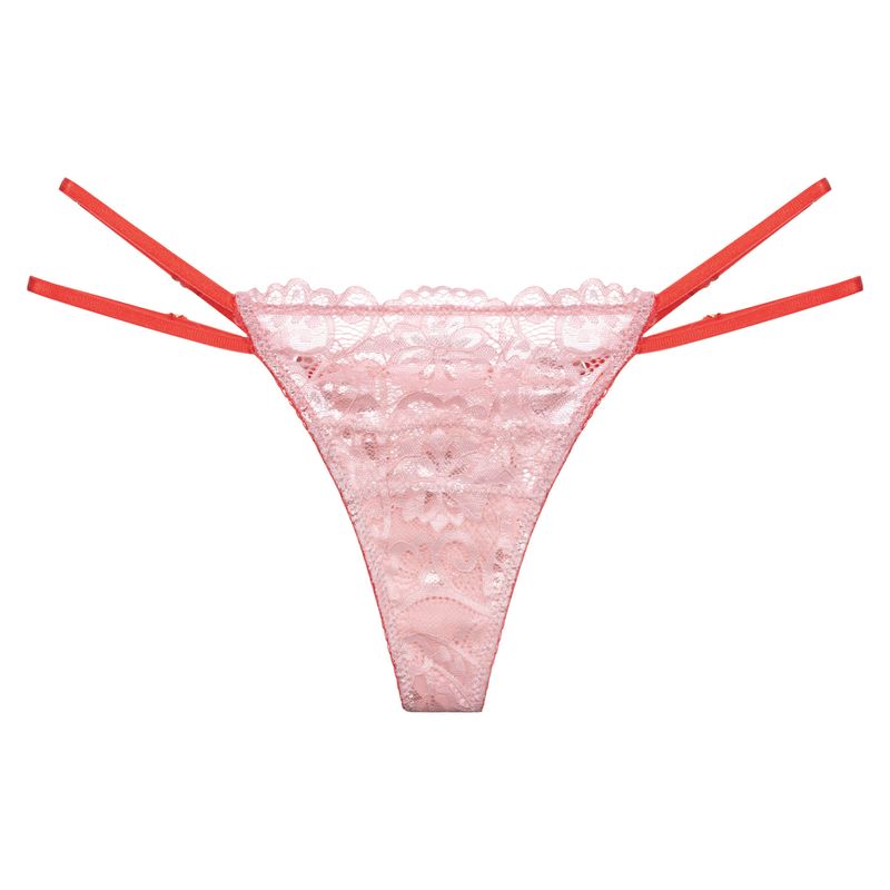 A Calcinha String Renda Kayla une delicadeza e conforto em um design sofisticado. Confeccionada em renda macia, garante toque suave e caimento perfeito. As duplas alças de ajuste nas laterais valorizam o contorno do corpo, oferecendo caimento ideal e versatilidade. O detalhe em fita de viés contrastante (vermelha sobre rosa claro) realça a renda, adicionando um toque moderno e feminino à peça. Elegante e sensual, é perfeita para compor looks íntimos sofisticados.