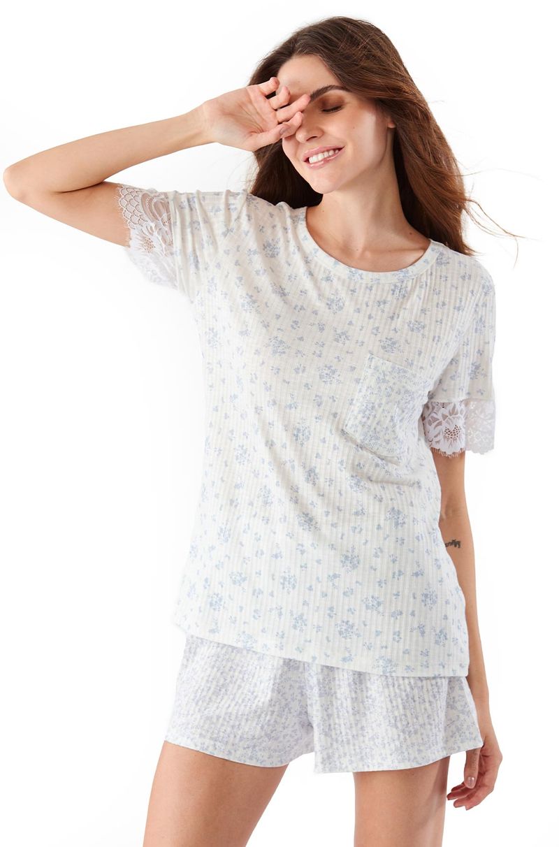 Produzido em malha canelada com estampa floral exclusiva, o Pijama Curto Malha Lily é uma peça macia e leve com caimento perfeito para máximo conforto durante suas noites de sono. Este pijama apresenta mangas curtas adornadas com detalhes em renda, modelagem soltinha e confortável, e calça com elástico na cintura para um ajuste ideal. A malha de viscose com tecnologia MVS protege 6 vezes mais proteção contra a formação de bolinhas após as lavagens, mantendo a qualidade e a beleza da peça por muito mais tempo.