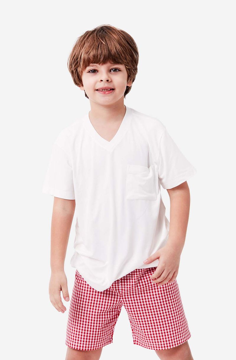 O Pijama Curto Manga Curta Tricoline Mini Masculino HoHoHo é ideal para deixar os pequenos no clima natalino com conforto e estilo. O conjunto é composto por camiseta de manga curta em malha leve e macia, combinada com short em tricoline xadrez vermelho, trazendo o visual clássico e festivo do Natal. Fresquinho, confortável e perfeito para noites especiais em família, o pijama oferece liberdade de movimento e um toque divertido para celebrar a temporada.