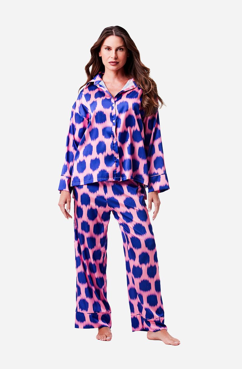 Com design refinado e toque acetinado, o Pijama em Cetim é a escolha ideal para quem busca elegância e conforto. O modelo conta com abertura frontal em botões, que garante praticidade, e parte inferior com cós elástico, oferecendo caimento impecável e liberdade de movimento. Disponível em cores variadas e estampas gráficas exclusivas, é perfeito para noites festivas, ocasiões especiais e para transformar a rotina em momentos de charme e leveza.