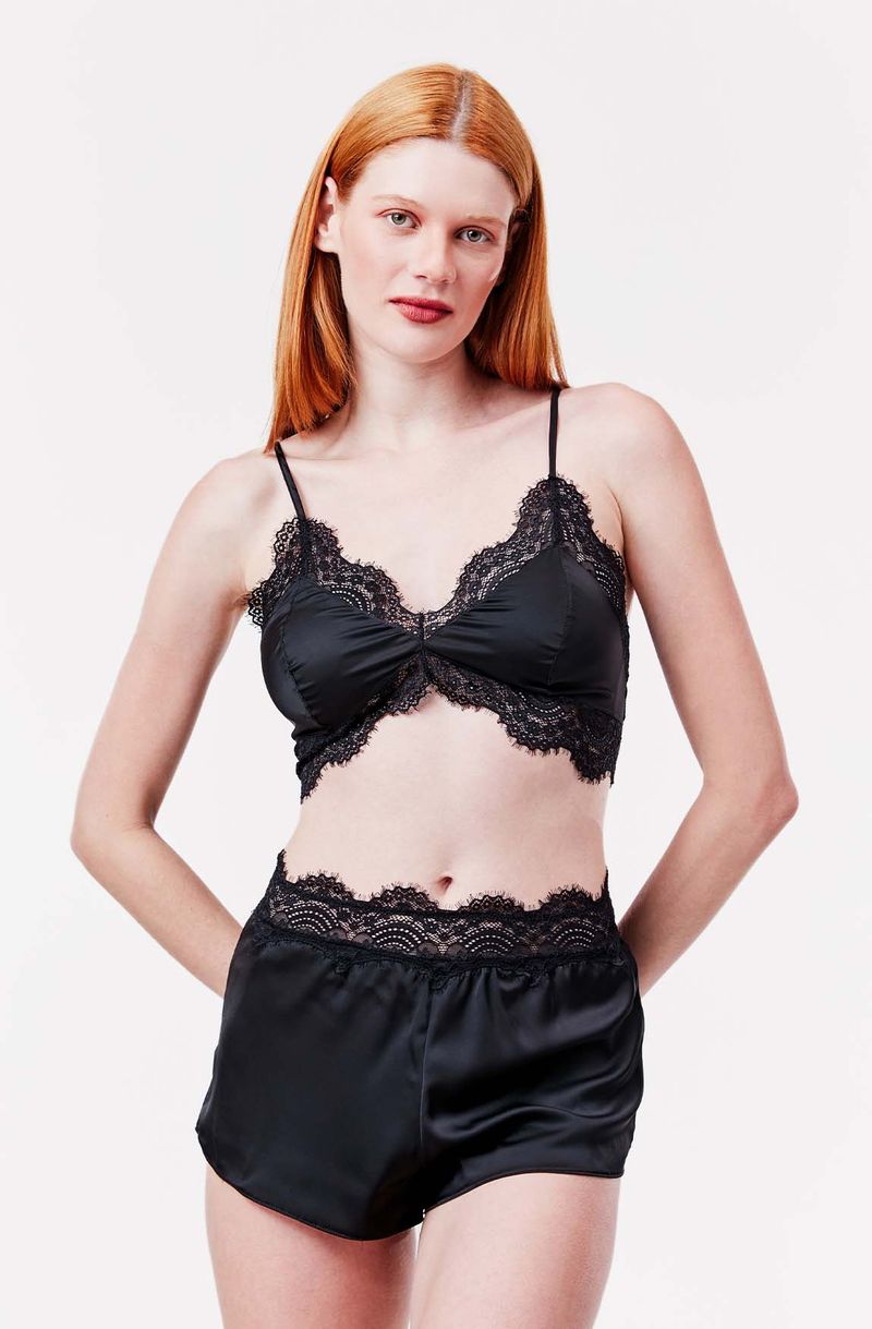 Com inspiração romântica e acabamento luxuoso, o Shortdoll Cetim Marriage combina cetim de toque acetinado com renda delicada. O top em cetim traz recortes anatômicos que valorizam o busto e detalhes em renda com cílios no decote, alças e cós. O shorts de cintura alta é confeccionado em cetim, ganhando charme extra com o cós em renda chantilly. O fechamento do top com laço de cetim nas costas finaliza a peça com um toque delicadamente sensual.
