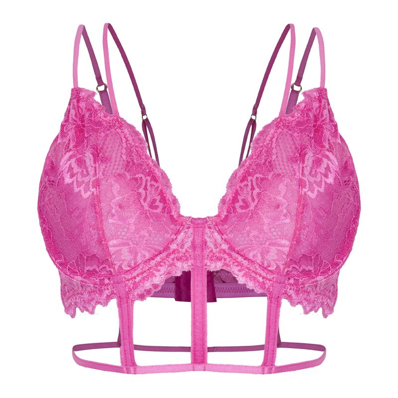 O Sutiã Aro Sem Bojo Cropped em renda rosa é a perfeita tradução de delicadeza com um toque moderno. Confeccionado em renda floral, traz alças duplas que adicionam charme e sustentação, enquanto o recorte vazado entre os seios valoriza a sensualidade de forma sutil e sofisticada. O grande diferencial está nas tiras aplicadas abaixo do busto, criando um desenho geométrico ousado que contrasta com a suavidade da renda. Finalizado com cós rendado, o modelo garante acabamento refinado, resultando em uma peça romântica, atual e encantadora.