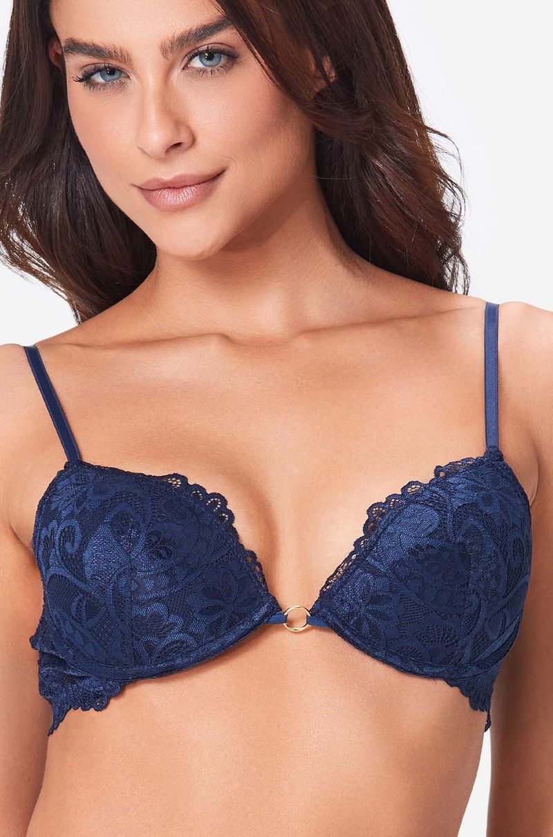 O Sutiã Push Up Renda Olivia é a peça perfeita para quem deseja realce, sustentação e sofisticação em cada detalhe. Em azul marinho, um tom elegante e atemporal, ele valoriza o colo com charme e traz um toque moderno para a lingerie do dia a dia ou para ocasiões especiais. Confeccionado em renda premium floral, o modelo combina delicadeza e sensualidade com um acabamento impecável. O efeito push up proporciona um decote bonito e realçado, enquanto sua estrutura garante sustentação na medida certa, oferecendo conforto e segurança ao vestir. O fecho nas costas é discreto, funcional e ajustável, garantindo o encaixe perfeito.