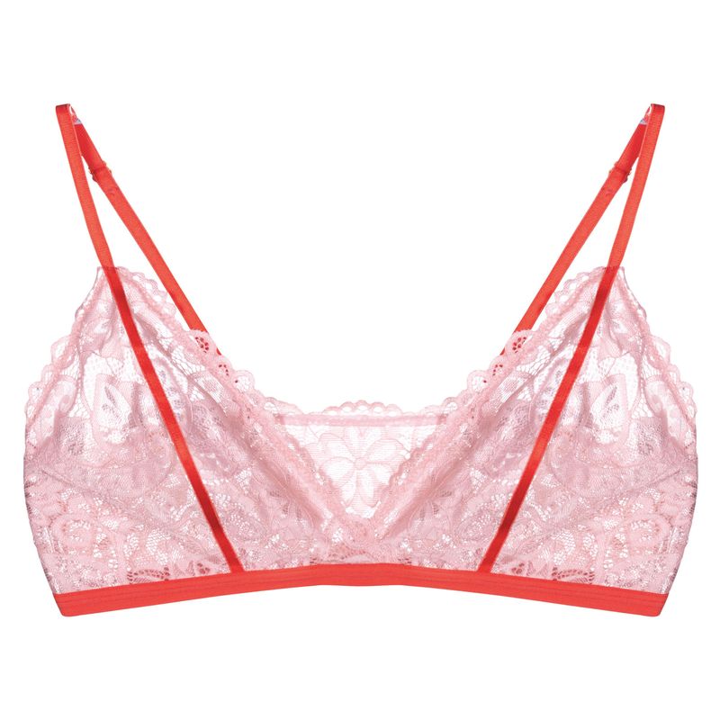 O Sutiã Top Renda Kayla une delicadeza e conforto em um design sofisticado. Confeccionado em renda macia, garante toque suave e caimento perfeito. As alças ajustáveis oferecem suporte ideal, enquanto o decote realça a beleza natural do busto. O detalhe em fita de viés contrastante (vermelha sobre rosa claro) valoriza o contorno da renda, adicionando um toque moderno e feminino à peça. Versátil, pode ser usado à mostra para compor looks ou em momentos especiais.